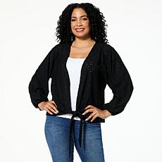 "As Is" Colleen Lopez Crochet Eyelet Knit Tie-Front Topper
