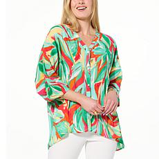 "As Is" Colleen Lopez Printed Woven Dolman Top with Button Front