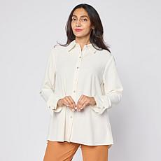 "As Is" MarlaWynne Pleat Back Crepe Shirt with Cuff Detail