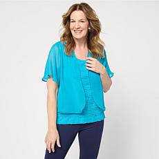 Colleen Lopez Flutter Sleeve Rounded Hem Woven Shrug- Pricing