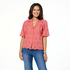 "As Is" HUE Button Down Eyelet Top with Scalloped Trim