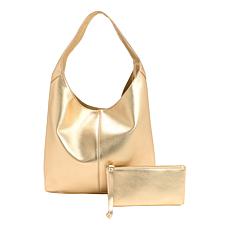 Joy Metallic Leather Hobo Slouch Bag with Wristlet