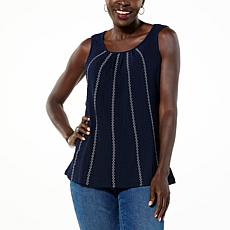 "As Is" Nina Leonard Pebbled Knit Tank Top with Embroidery
