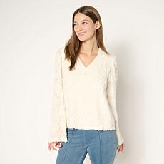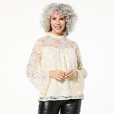 Tower Hill by Christie Brinkley Sequined Lace Bell Sleeve Blouse
