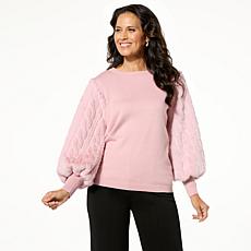 "As Is" Antthony Faux Fur Sleeve Crew-Neck Knit Sweater