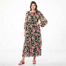 "As Is" Antthony Printed Mesh Knit Tiered Ruffle Maxi Dress- Pricing