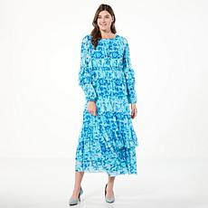 "As Is" Antthony Printed Mesh Knit Tiered Ruffle Maxi Dress