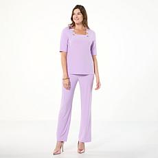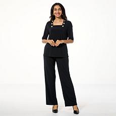 "As Is" Antthony 2-piece Button Shoulder Top & Pull-On Pant Set