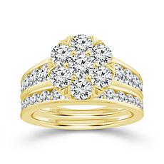 Bright Halo Lab Grown Diamonds 3.04ctw Round Cluster Ring Bridal Set