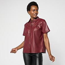 DG2 by Diane Gilman Faux Leather Short-Sleeve Button-Up Shirt
