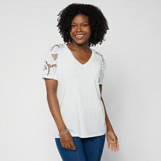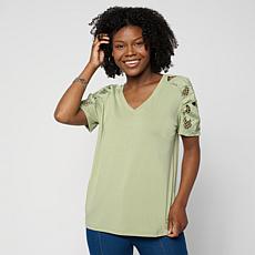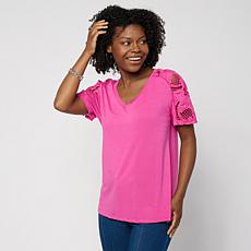DG2 by Diane Gilman Cotton Jersey Mixed Media Eyelet Sleeve Top