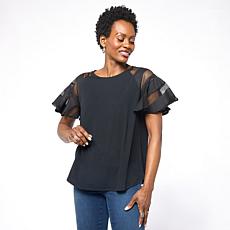 DG2 by Diane Gilman Lace Combo Flutter Sleeve Top