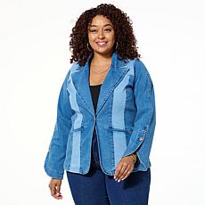 "As Is" DG2 by Diane Gilman New Clssic Stretch Denim Colorblock Blazer
