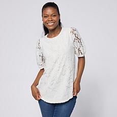 • DG2 by Diane Gilman Lace Eyelet Embroidered Puff-Sleeve Top DG2 by Diane Gilman Lace Eyelet Embroidered Puff-Sleeve Top