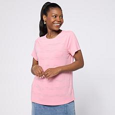 • DG2 by Diane Gilman Softease Mix Stripe Short Sleeve Sweater DG2 by Diane Gilman Softease Mix Stripe Short Sleeve Sweater