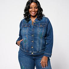 • DG2 by Diane Gilman New Classic Stretch Crystal Trimmed Denim Jacket DG2 by Diane Gilman New Classic Stretch Crystal Trimmed Denim Jacket