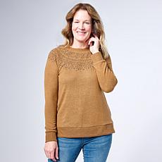 "As Is" Diane Gilman Burnout Velvet Sleeve Knit Top
