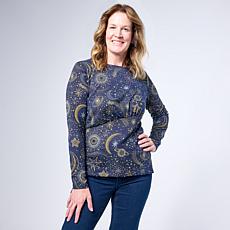 "As Is" DG2 by Diane Gilman Printed Mesh Knit Lantern-Sleeve Top