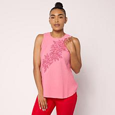 DG2 by Diane Gilman Crinkle Dobby Embroidered Tank