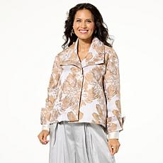 "As Is" WynneCollection Metallic Jacquard Floral Swing Jacket