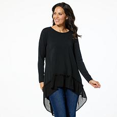 "As Is" DG2 by Diane Gilman Mixed Media Hi-Low Pleated Hem Drama Top- Pricing