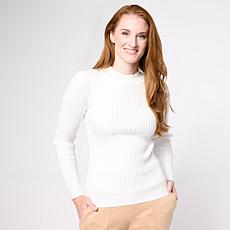 Nina Leonard Mock Neck Long-Sleeve Ribbed Sweater