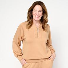 G by Giuliana Marshmallow Knit Sweatshirt with Zip-Up Collar- Pricing