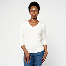 DG2 by Diane Gilman Ruched Asymmetric Seam Long Sleeve Top- Pricing
